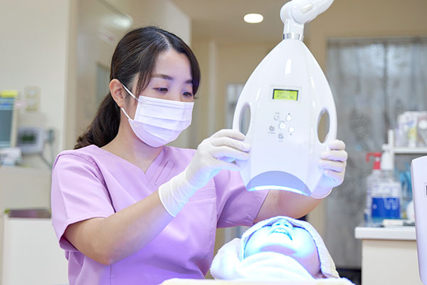 専用のマウスピースを作製し、ご自身で薬剤を使って毎日少しずつ歯を白くしていきます。効果を実感できるまでに時間はかかりますが、白さが長持ちしやすいという利点があり、ゆっくりでも確実に白くしたい方におすすめです。