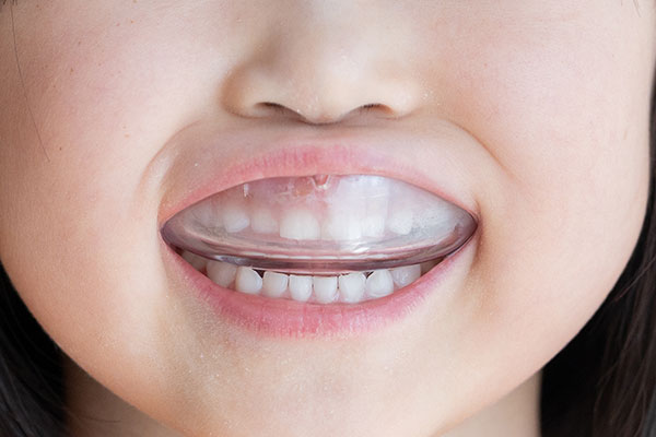 受け口(反対咬合)は、3歳ごろから治療が可能です。当院では、ムーシールドというマウスピース型の装置を使った早期治療を行っています。成長段階の早いうちに改善することで、あごのずれが軽減され、将来的に本格的な矯正を回避できることもあります。お子さまの歯並びやかみ合わせが気になる方は、お気軽にご相談ください。