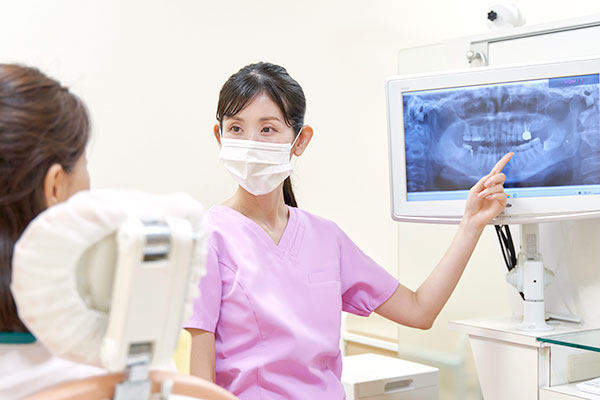 定期的な検診は、むし歯や歯周病を早期に発見・対処するために欠かせません。多くの方は、痛みなどの症状が出てから歯科を受診されますが、その時点で症状が進行しているケースが少なくありません。定期検診では、歯や歯ぐきの状態、みがき残し、かみ合わせなどを総合的に確認します。歯周病の症状など特に問題がなければ、3か月に1回の来院を目安にすると、むし歯や歯周病の進行を防ぎやすくなります。