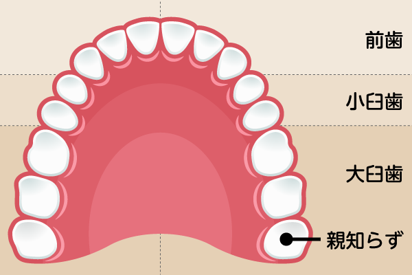 親知らずは、奥歯のさらに奥に生えてくる第三大臼歯で、20歳前後で萌出することが多い歯です。まっすぐ正常に生えてくれば問題ありませんが、あごが小さくスペースが足りない現代人では、横向きや斜めに埋まったままになるケースが多く、トラブルの原因になることも少なくありません。炎症や腫れ、痛みなどを繰り返すこともあり、放置せず早めに診察を受けることが大切です。